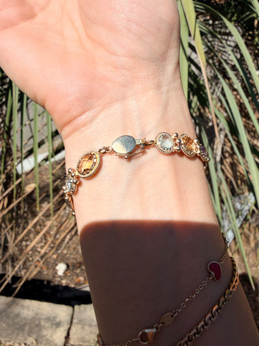 14k Amethyst, Citrine, and Blue Topaz Bracelet, 7.5"