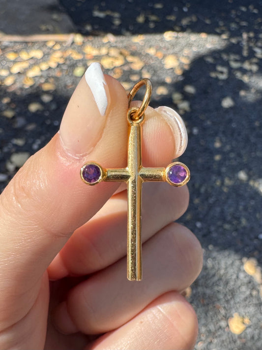 18k Amethyst Cross Charm