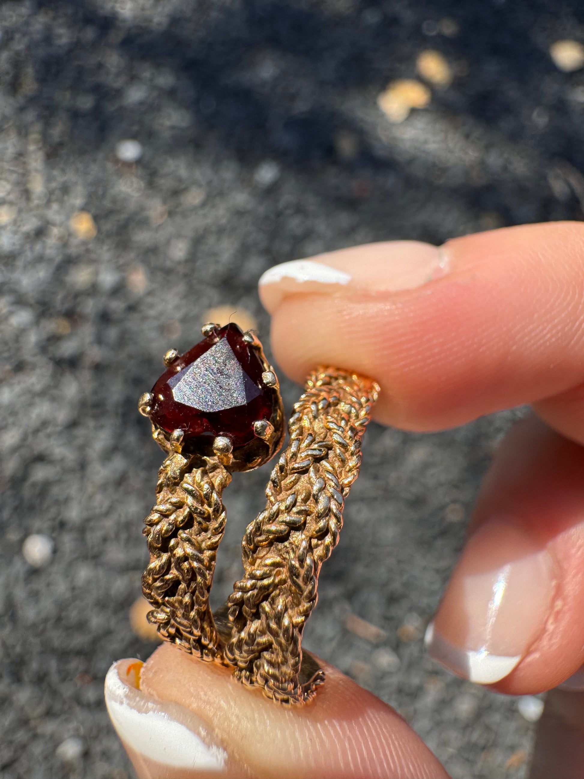 14k Garnet Rope Ring